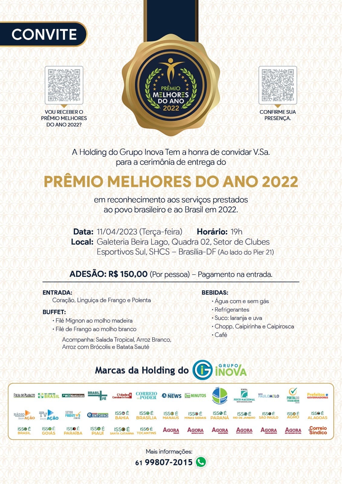 O Banco de Brasília (BRB) foi anunciado como o vencedor do prêmio "Melhores do Ano 2022" pelo Grupo Inova, em reconhecimento às suas iniciativas inovadoras no setor financeiro